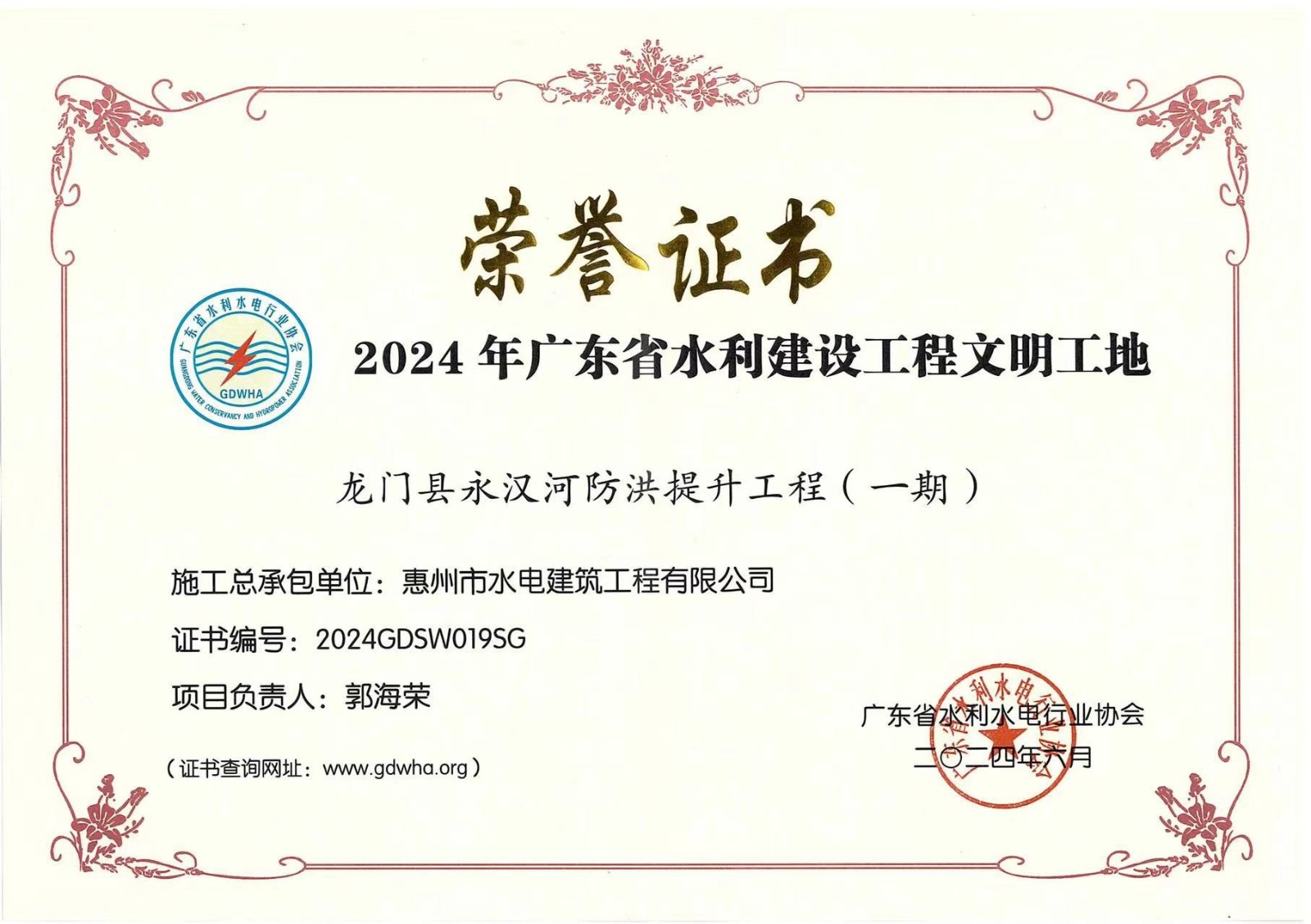惠州市水電建筑工程有限公司成立于一九六四年四月,隸屬惠州市水務(wù)集團(tuán)有限公司,是一家國有綜合性施工企業(yè),主營水利水電工程、房屋建筑、市政工程等施工業(yè)務(wù)。公司擁有水利水電工程施工總承包一級、建筑工程施工總承包一級、市政公用工程施工總承包一級、公路工程施工總承包三級,公路路基、路面及建筑裝修裝飾專業(yè)承包二級,環(huán)保工程、機(jī)電安裝、河湖整治、輸變電工程專業(yè)承包三級等經(jīng)營資質(zhì)……